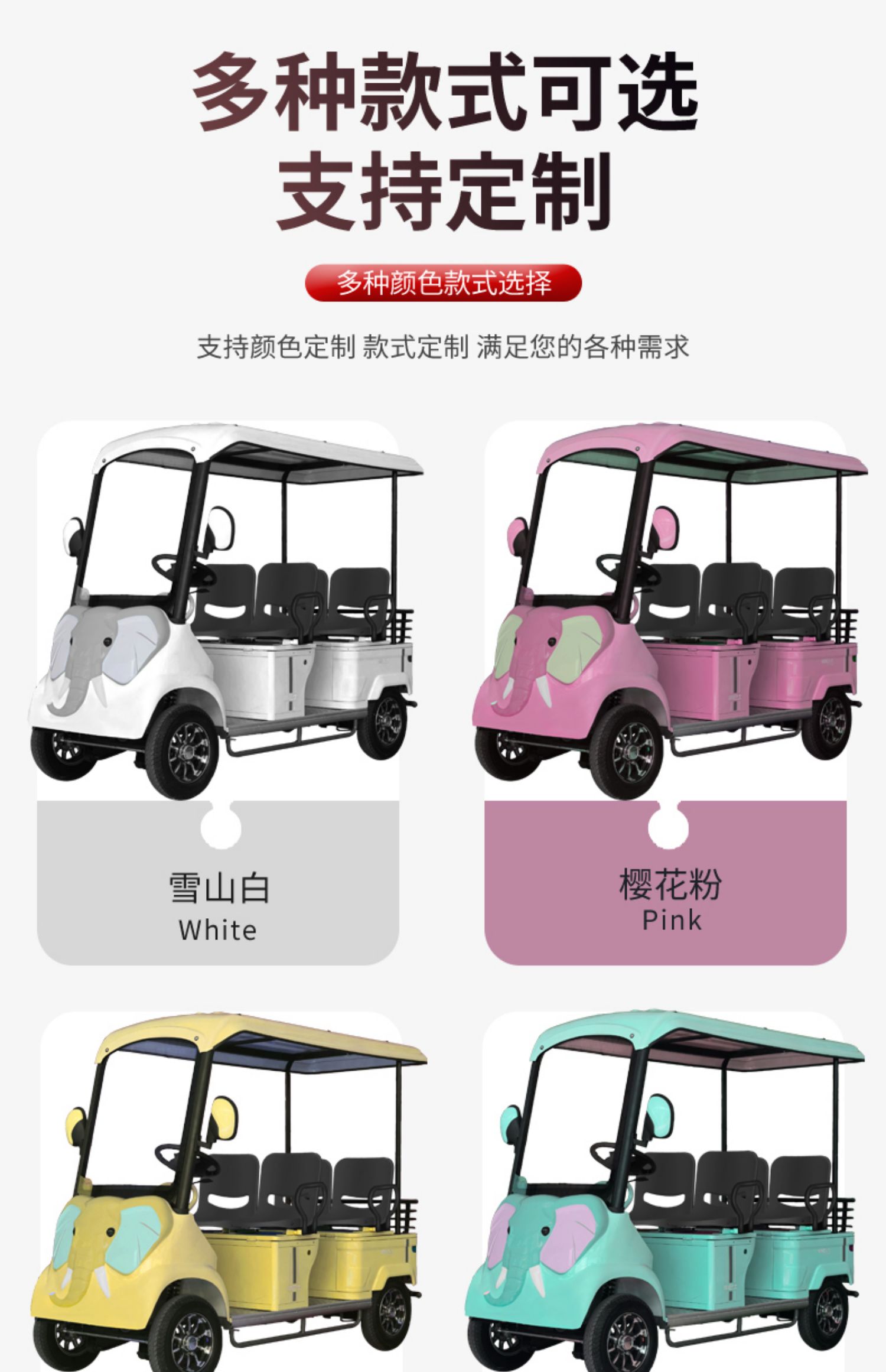 首页 > 产品展示 > 电动代步车 > 2024 新款小巴士M7加宽座4人6人座电动四轮车老年人代步车带棚景区观光车