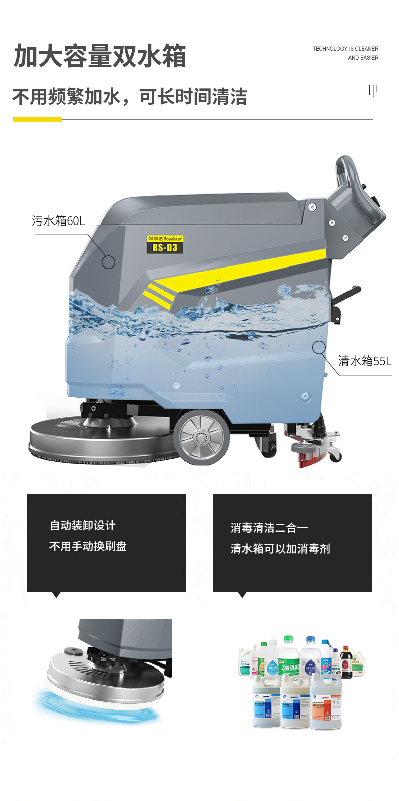 2024新款新能源手推式洗地机充电款智能洗地机器