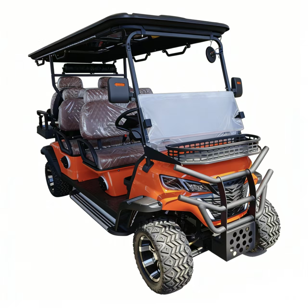 2.Durable & Rugged BuildReinforced front bumper (metal construction) for minor impact protection; rugged all-terrain tires with deep treads, suitable for golf course paths, gravel, or paved surfaces.