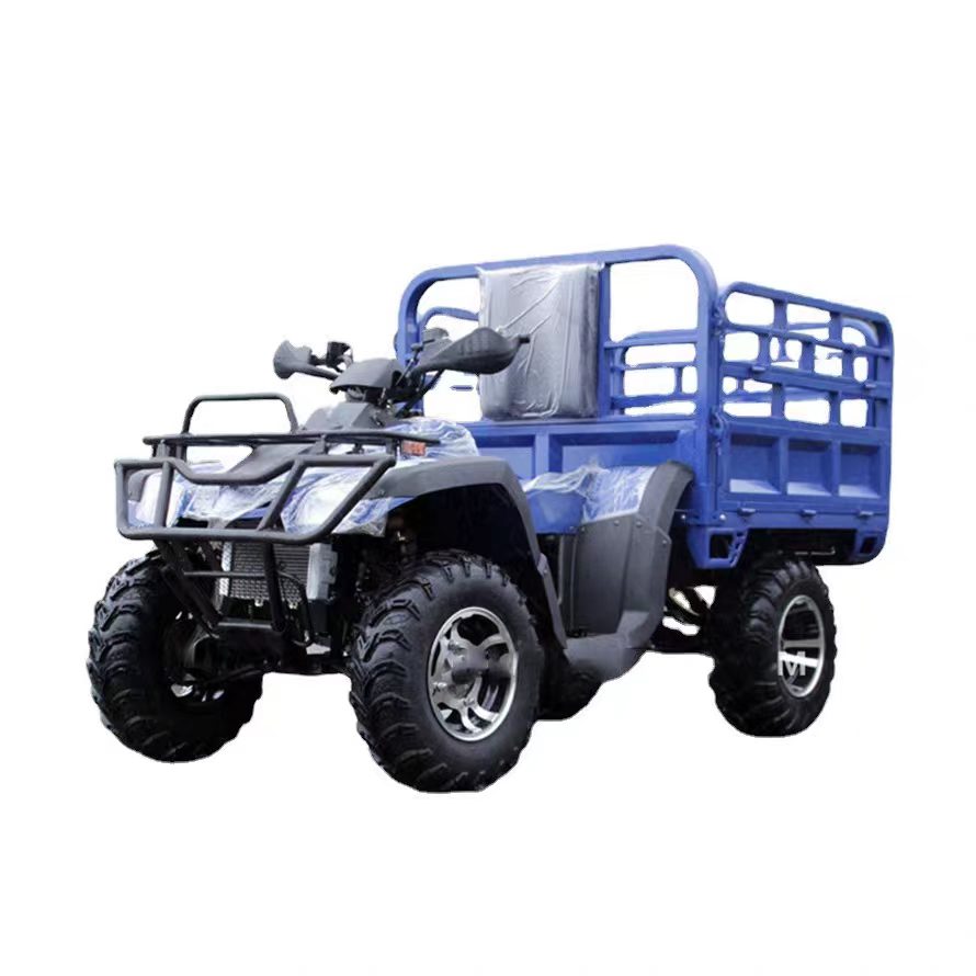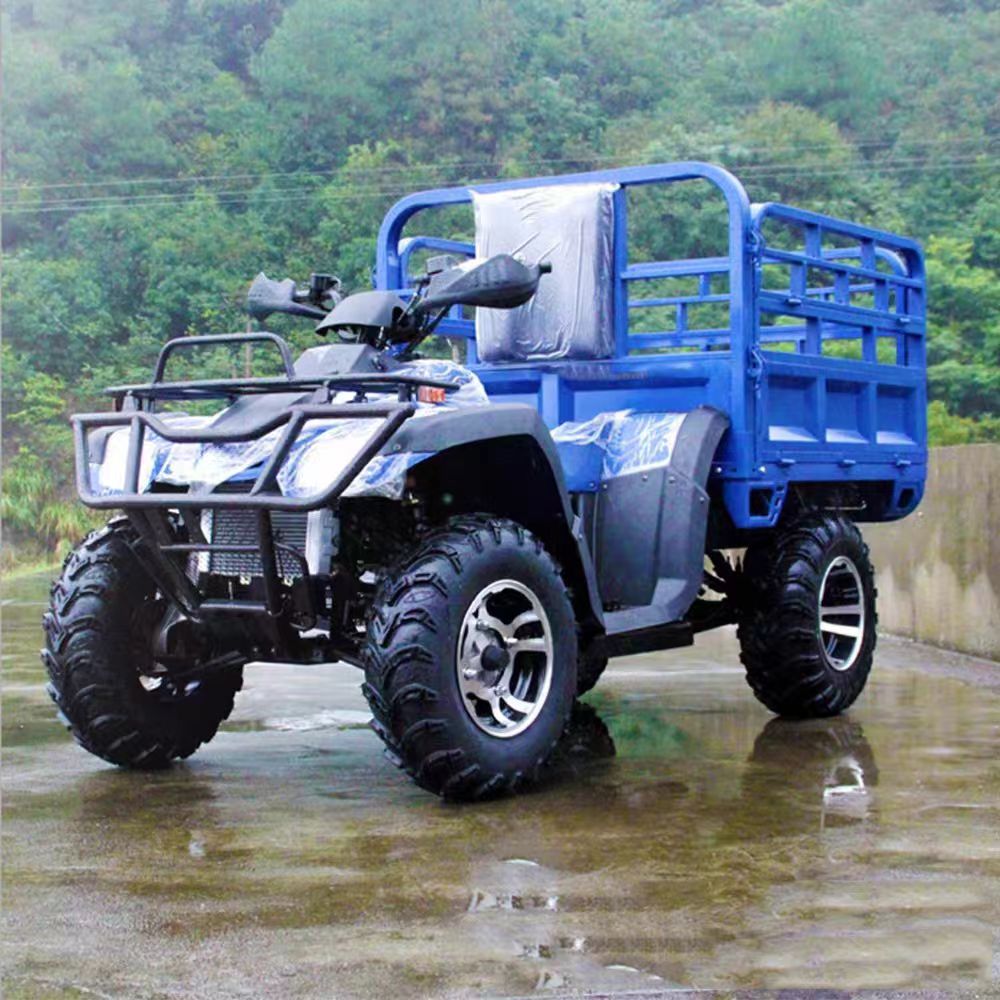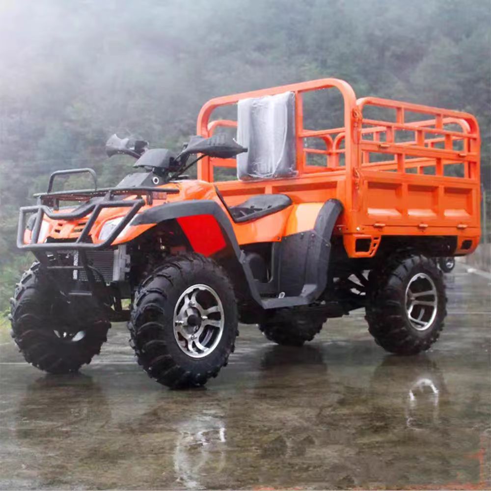 This rugged 4-wheel utility vehicle is purpose-built for heavy-duty off-road work and cargo transport. Combining powerful performance with a durable rear cargo bed, it's the ideal workhorse for farms, plantations, construction sites, and outdoor adventure scenarios. Whether you're hauling supplies, equipment, or materials across rough terrain, this ATV delivers reliable traction, stable handling, and impressive load capacity to get the job done efficiently.